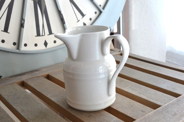 チョコレートポット APILCO Porcelaine a feu 年代 : 1900年代 材質 : 磁器 サイズ : 10.7(リム~持ち手)×9.9(注ぎ口~リム)×h12.3cm、φ8.3(底部分) カラー : ホワイト コンディション : 経年による、シミ、キズ、汚れなど若干ありますが、目立ったカケはありません。写真8,9は、製造時に付いた凸です。尚、注ぎ口に製造時に付いたヒビが2か所(1.5cm,2.0cm)ありますが、問題はないと思います。全体的には大変綺麗で良好と思います。 フランス製