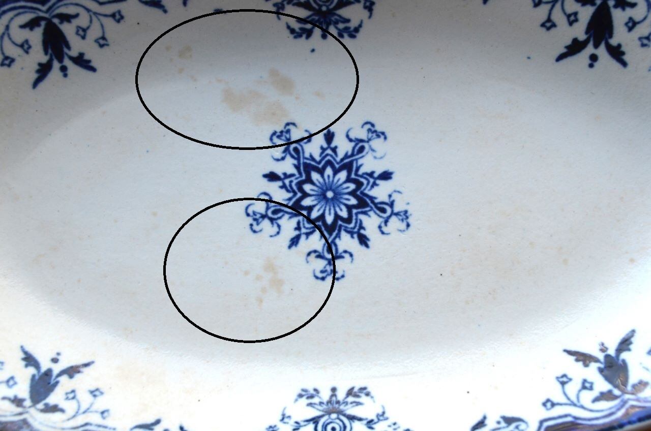 コンディション : 経年による、シミ、キズ、汚れ、貫入などあり、特にシミ(写真4)は表面に茶色く現れていて目立ちます。又、リムに極小さなカケ(写真5)がありますが、こちらはあまり目立たないと思います。尚、写真6は転写シートのつなぎ目です。全体的には悪くはないと思いますが、シミが気になる方はご遠慮ください。