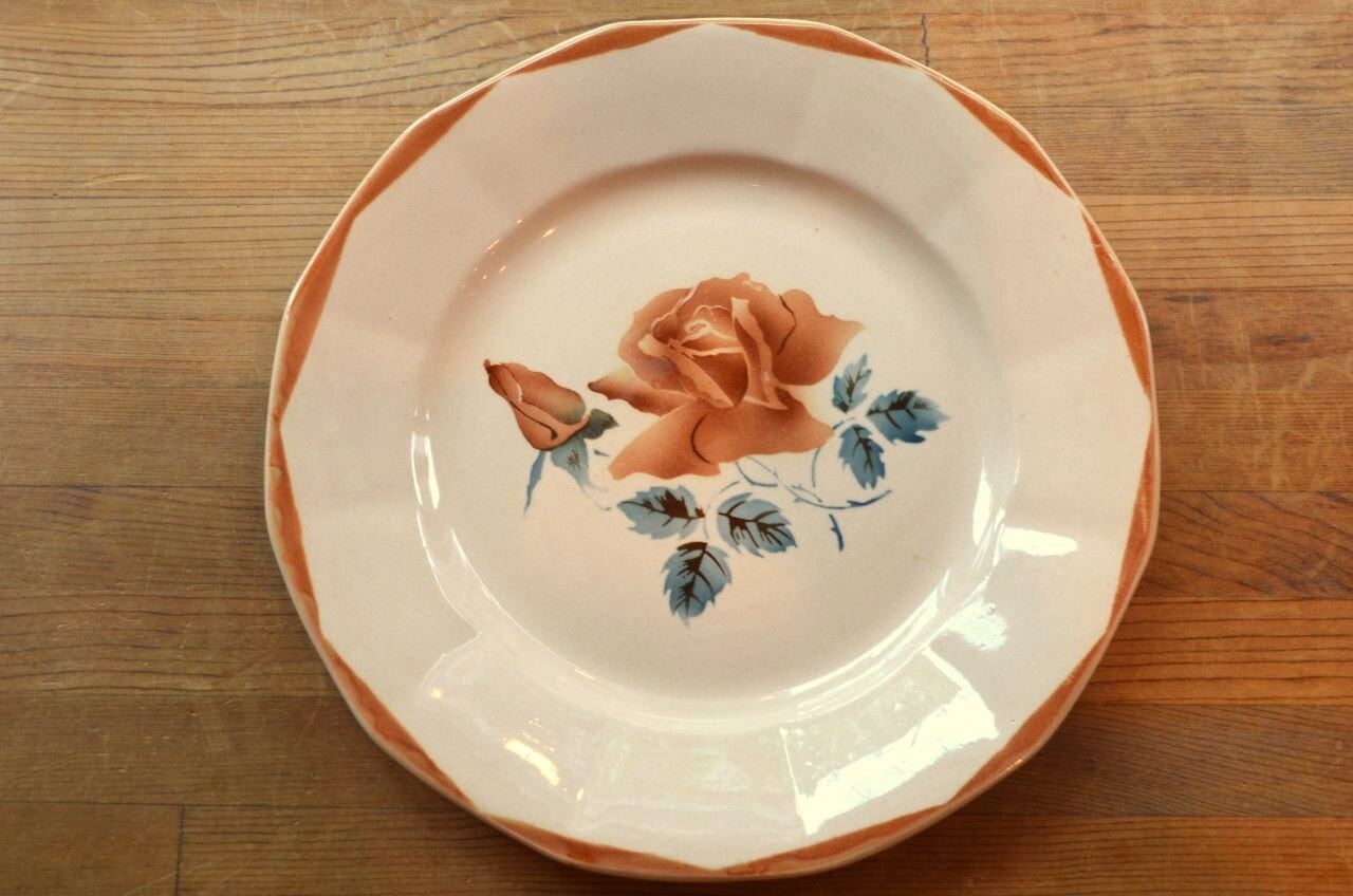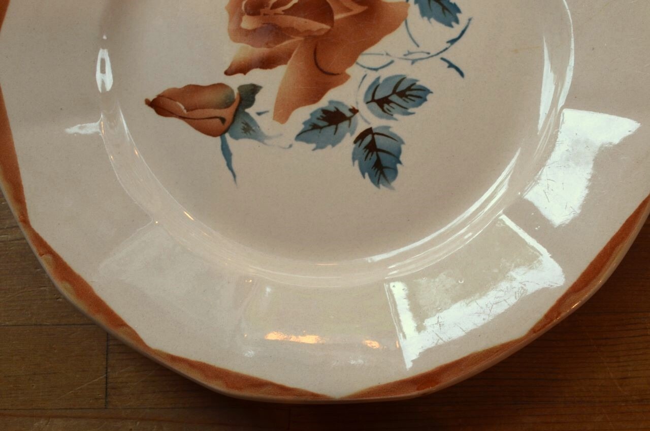 カラー : ピンク地にピンクがかったブラウンのローズ柄、リムもピンクがかったブラウンで、葉はブルーグレー。