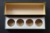コンディション : 経年による、シミ、キズ、汚れなどあり、蓋には一部サビ(写真20〇等)が見られますが、カケなどはありません。箱は状態が良いです。全体的には綺麗で良好と思います。