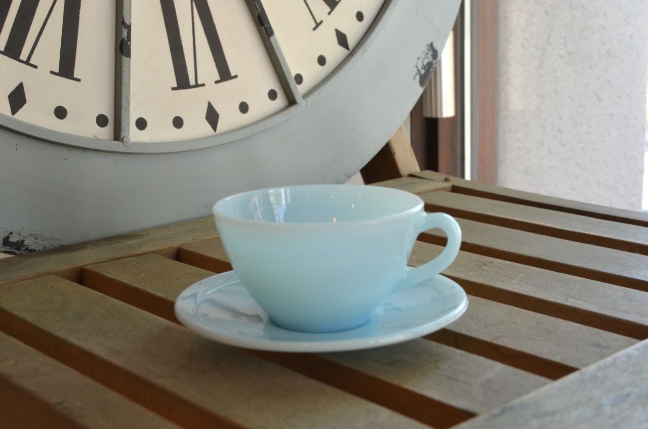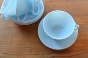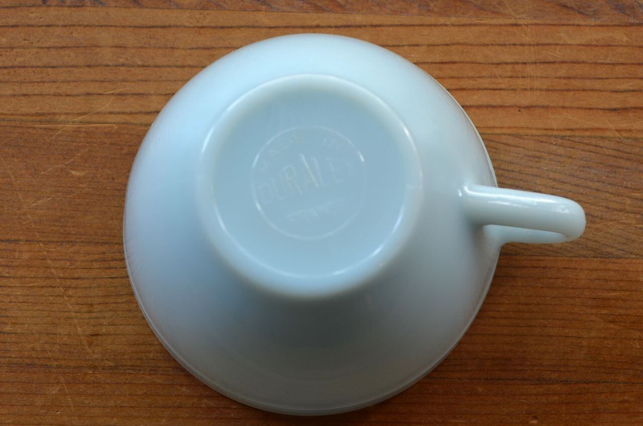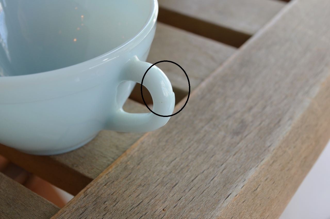 コンディション : 経年による、シミ、キズ、汚れなど若干あり、又、持ち手にカケとヒビ(写真7,8〇)が入っていて、後ろ側まで通っています。現段階では取れていませんが、コーヒーなどの液体を入れると取れる恐れがあります。ミルクガラスの風合いがとてもかわいらしく、柔らかなカップ&ソーサーですが、装飾品としてご利用くださることをお勧めします。