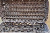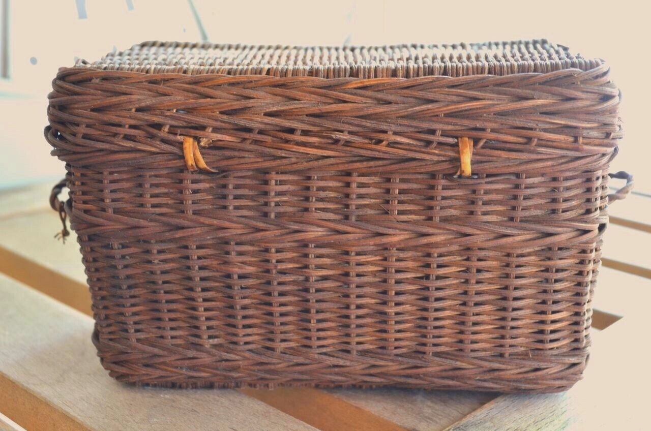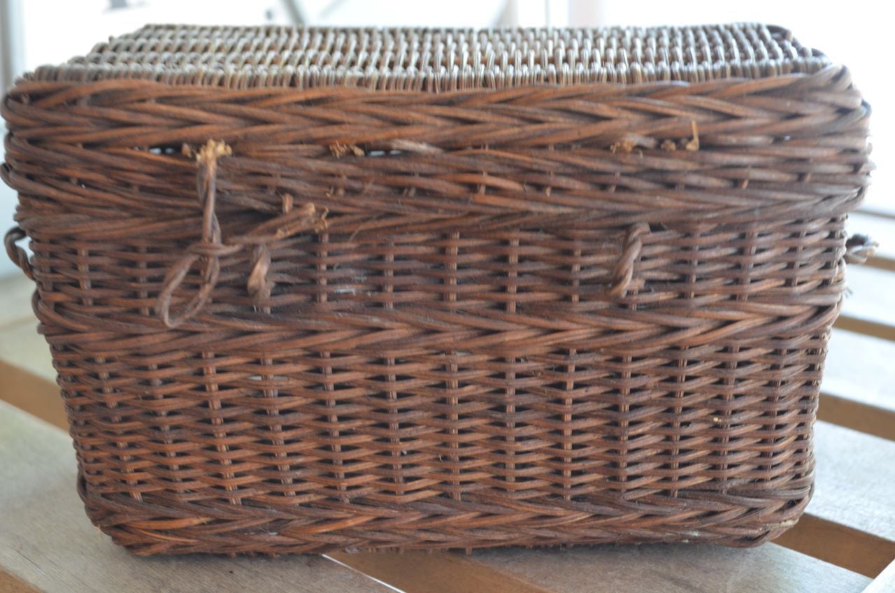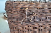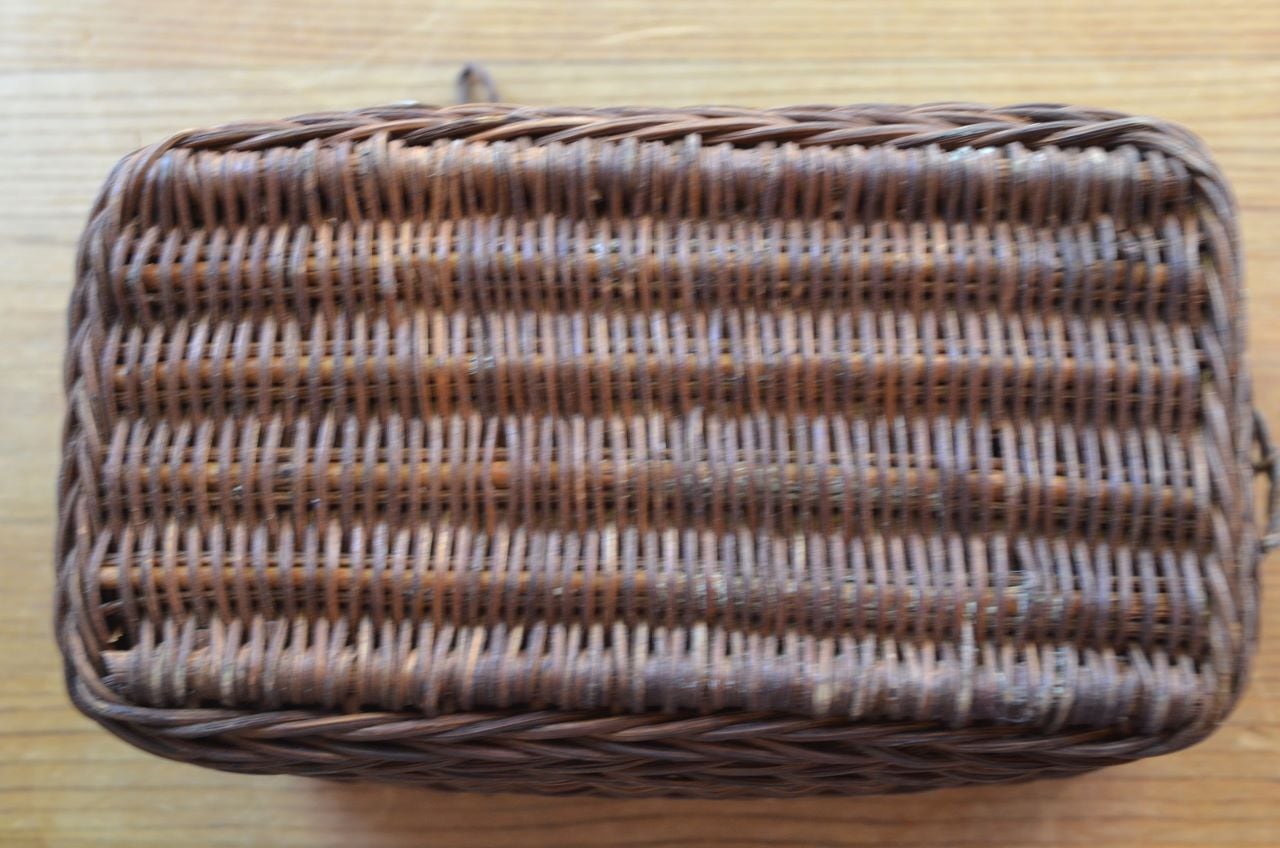 コンディション : 経年による、シミ、キズ、汚れなどあり、前方の蓋を留める部分の右側が取れて(写真3)いて、左側も破損(写真4)していて取れそうです。又、外側部分には見られませんが、内側に折れたり裂けてる部分(写真10〇)がありますが、大きなダメージではないと思います。全体的にはとてもかわいらしいパニエと思います。