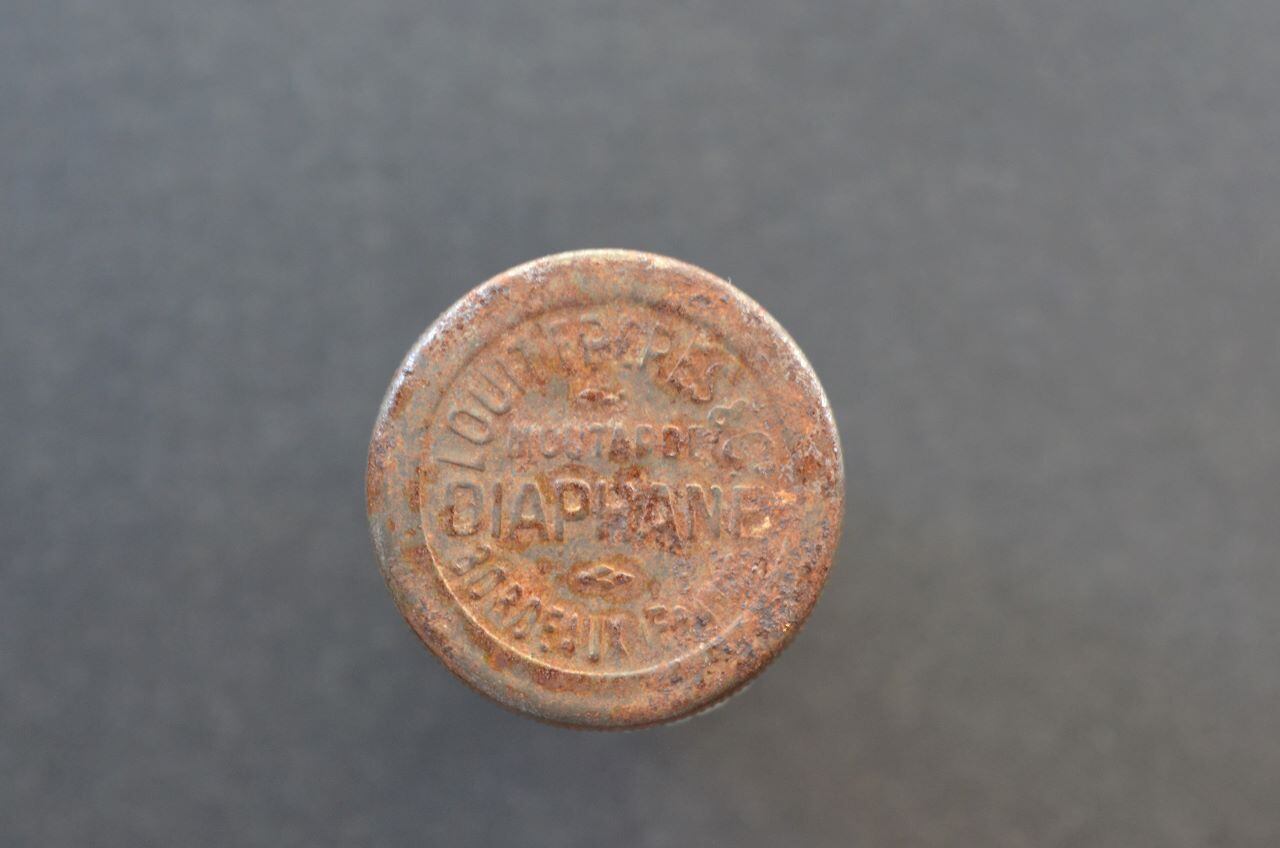 コンディション : 経年による、シミ、キズ、汚れなどありますが、目立ったカケなどはありません。但し、蓋がサビていて、文字があまり見えませんが、LOUIT FRERES & CO MOUTARDE DIAPHANE とBORDEAUX(ボルドー)と書かれていますが、一部読めません。全体的にはなかなか味わいのあるポットです。サビが気になる方はご遠慮ください。