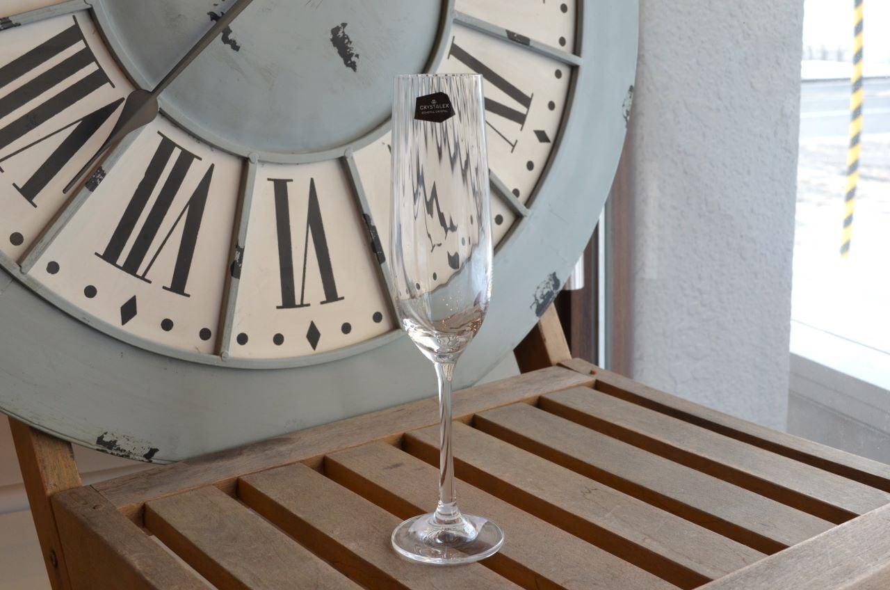 ※写真7は同シリーズのウォーターグラス(写真左)とワイングラス(写真中央)と。シャンパングラスは写真右です。