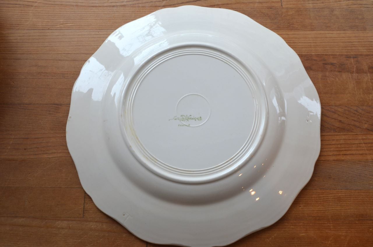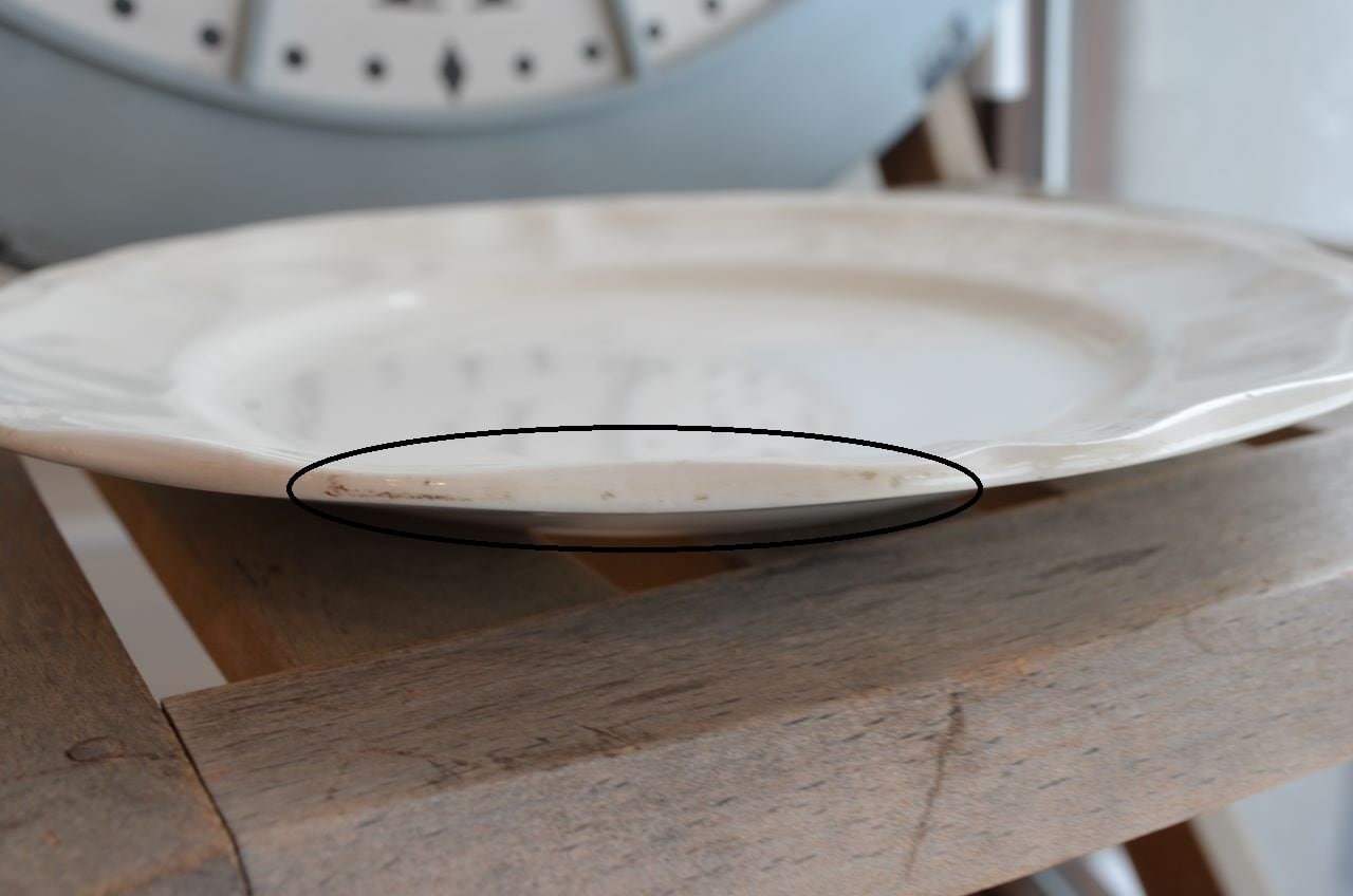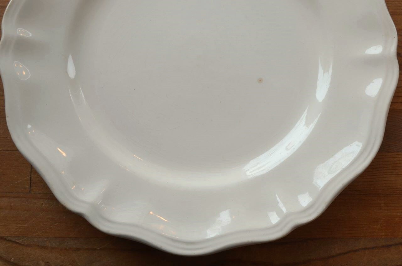 コンディション : 経年による、シミ、キズ、汚れ、貫入などあり、特にシミ(写真4〇)が表面にあり、小さいですが比較的目立っています。又、リムにもシミ(写真5,6〇)が見られます。窯キズの横に極小さなカケ(写真7〇)が複数見られ、他にもリムに極小さなカケ(写真8,9〇)があります。全体的にはわるくはないと思います。