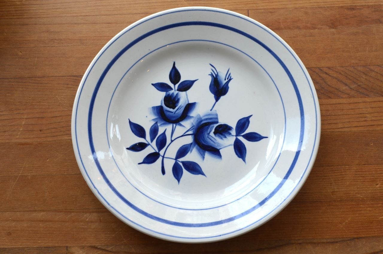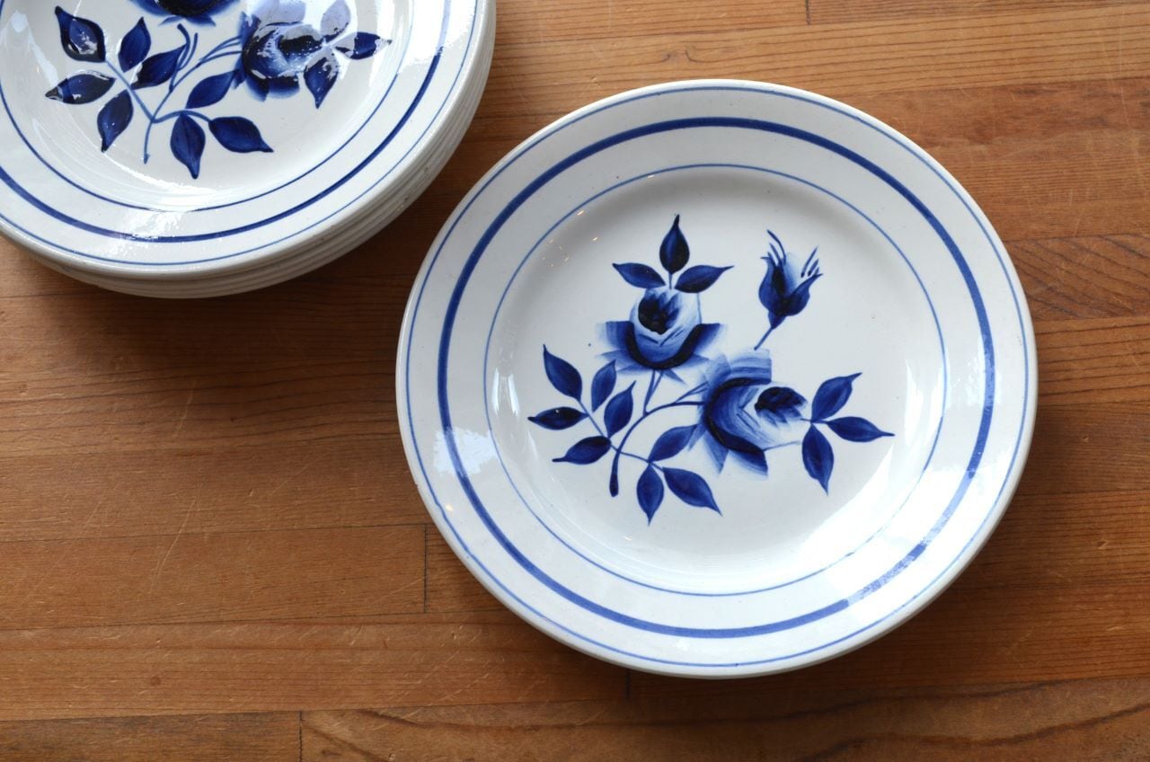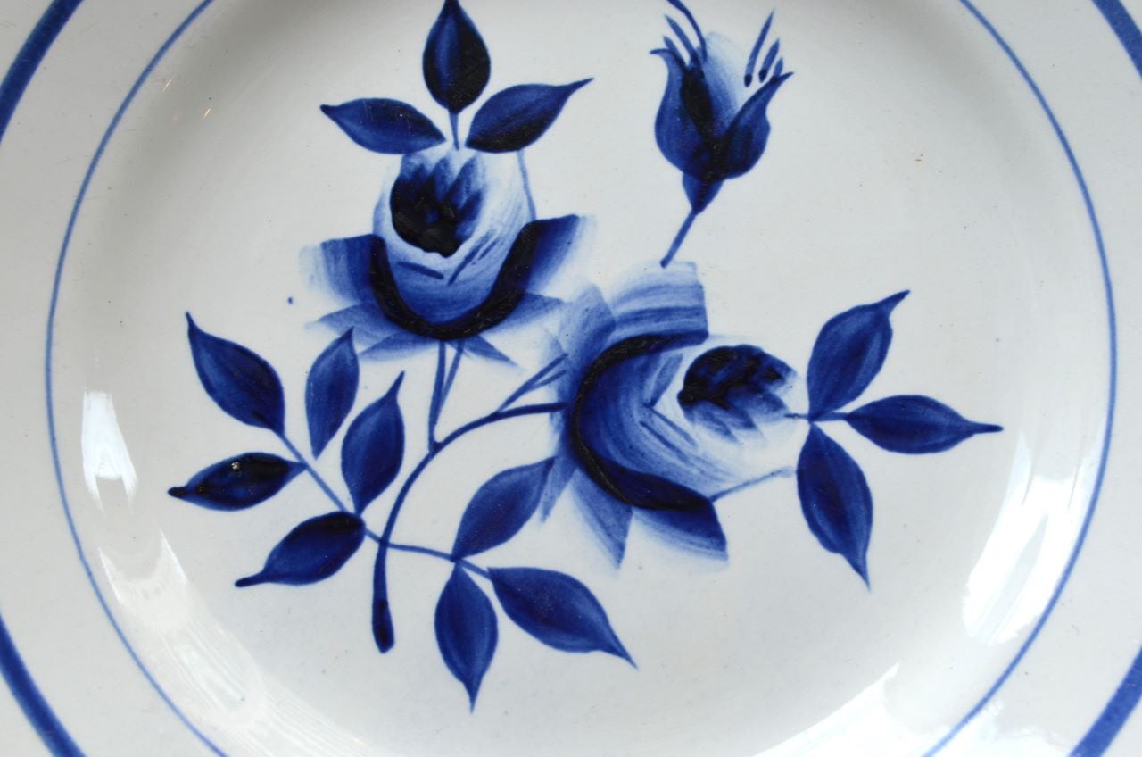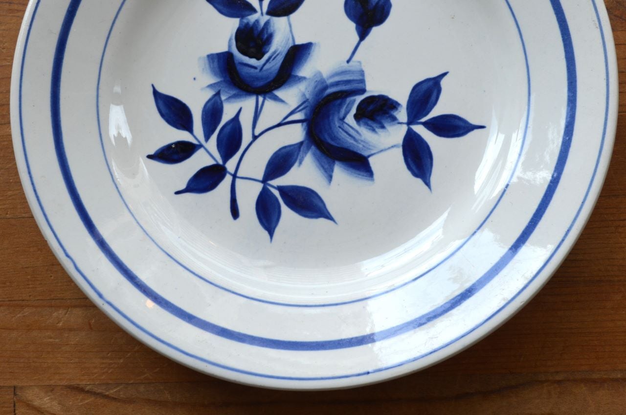 カラー : ホワイト地にダークブルーのローズ柄で、中心部などはグラデーション。リム下にも3本のブルーの濃淡のライン
