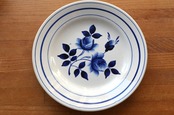 カラー : ホワイト地にダークブルーのローズ柄、中心部などは濃淡のグラデーション。リムにも3本のブルーの濃淡のライン。
