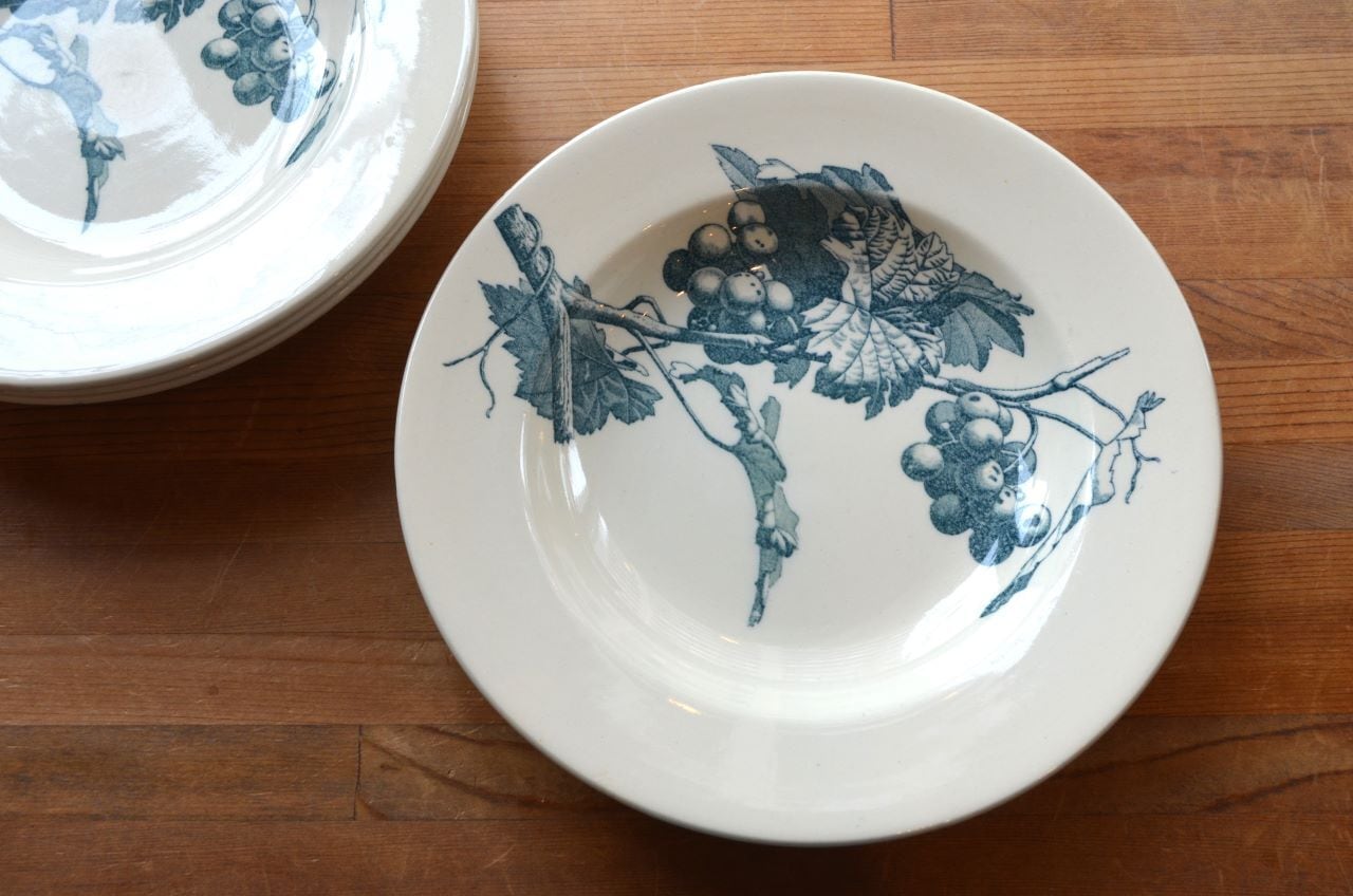 カラー : アイヴォリー地にライトブルーグレーのブドウ柄