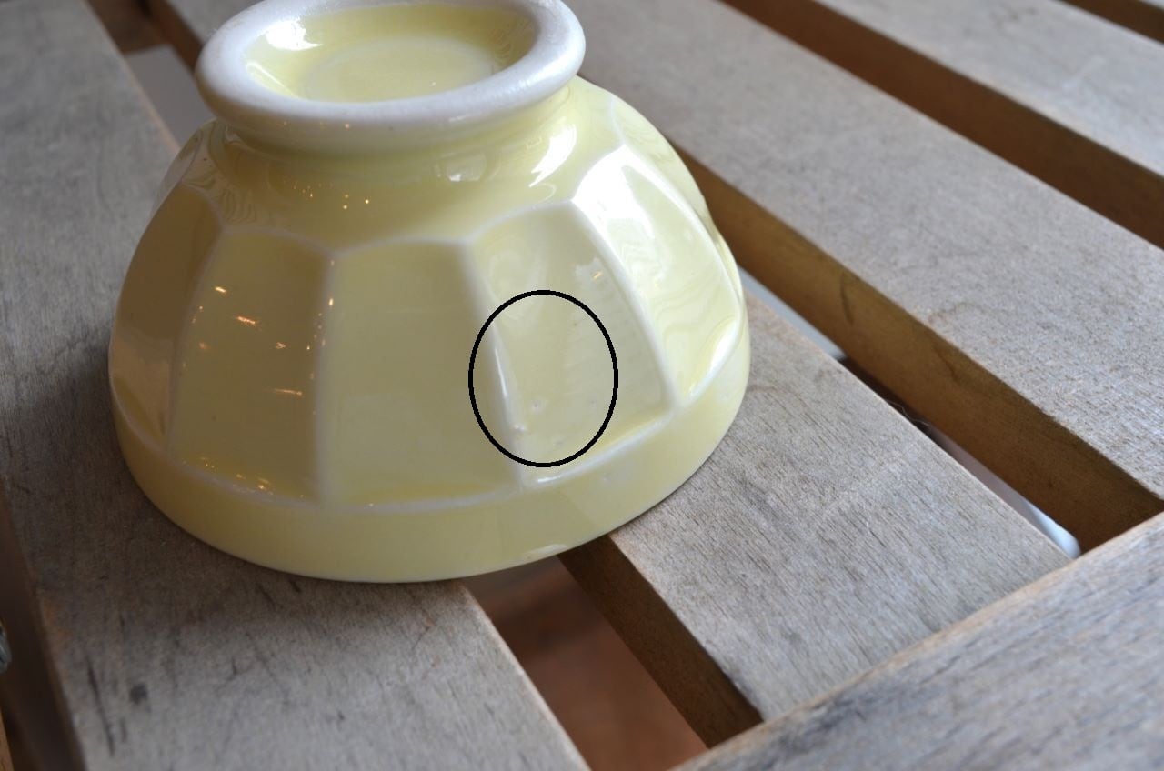 コンディション : 経年による、シミ、キズ、汚れ、貫入などほとんどなく、又、目立ったカケもなく、大変綺麗で良好です。尚、内側と外側に製造時に付いた凹凸(写真4,5〇)がありますが、それ程気にならないと思います。