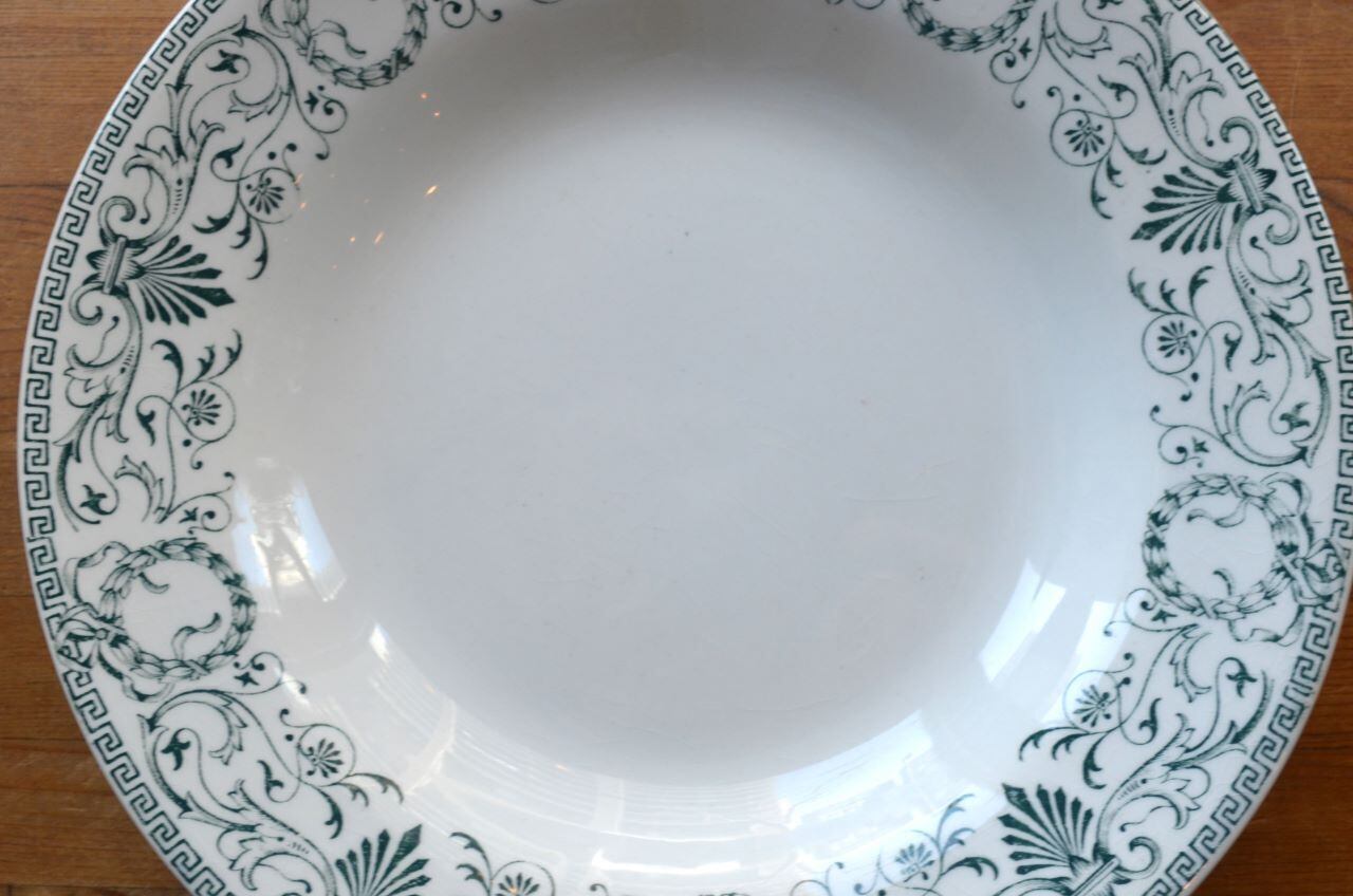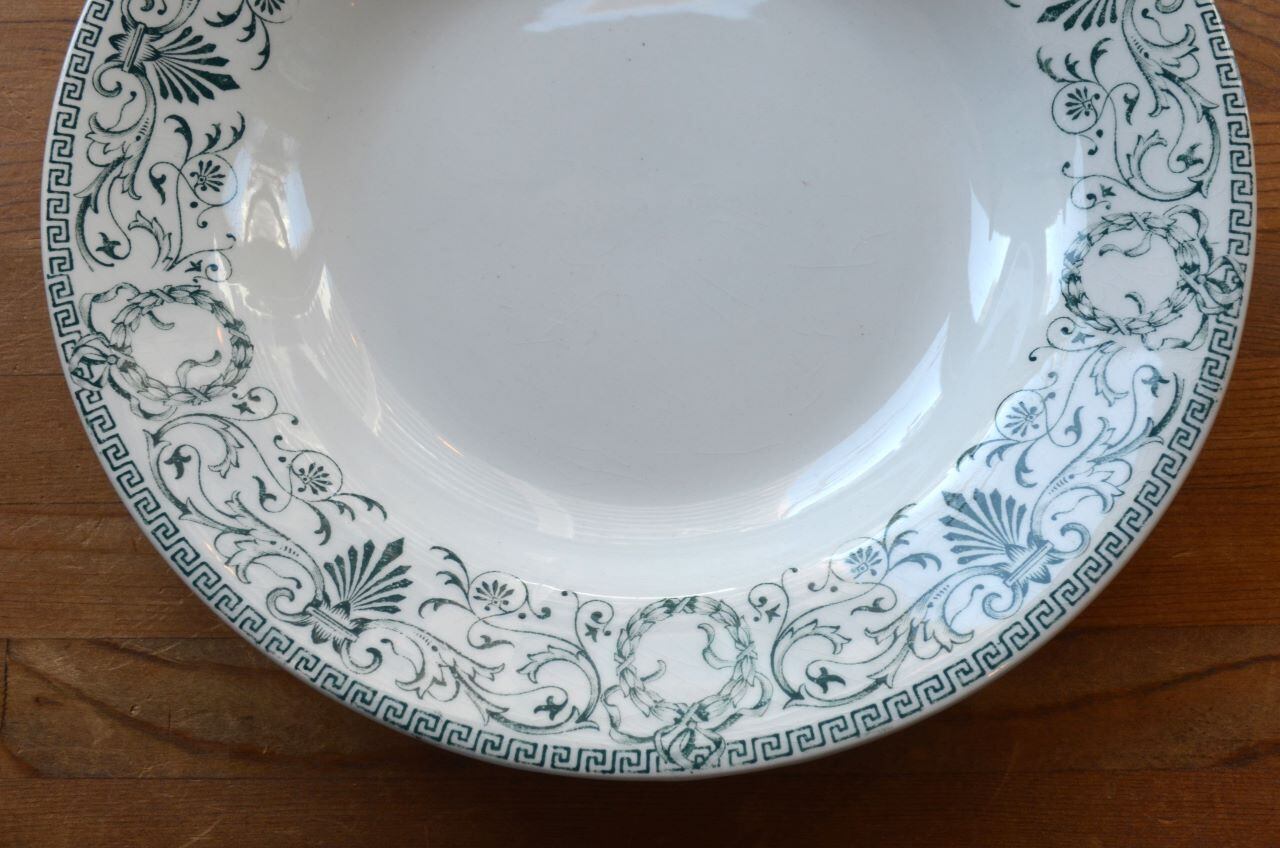 コンディション : 経年による、シミ、キズ、汚れ、貫入など若干ありますが、目立ったカケなどなく、大変綺麗で良好と思います。アールヌーヴォーの時代の大変素敵なスーププレートです。
