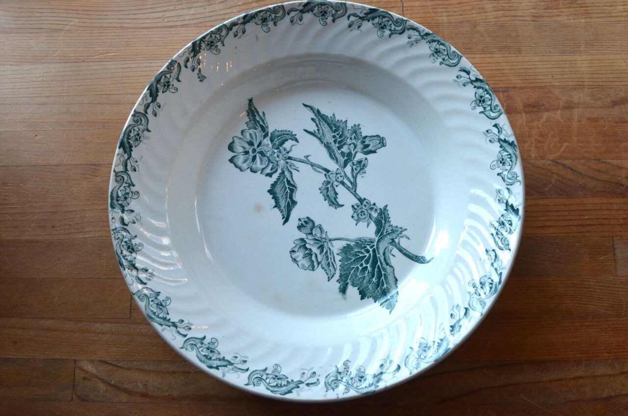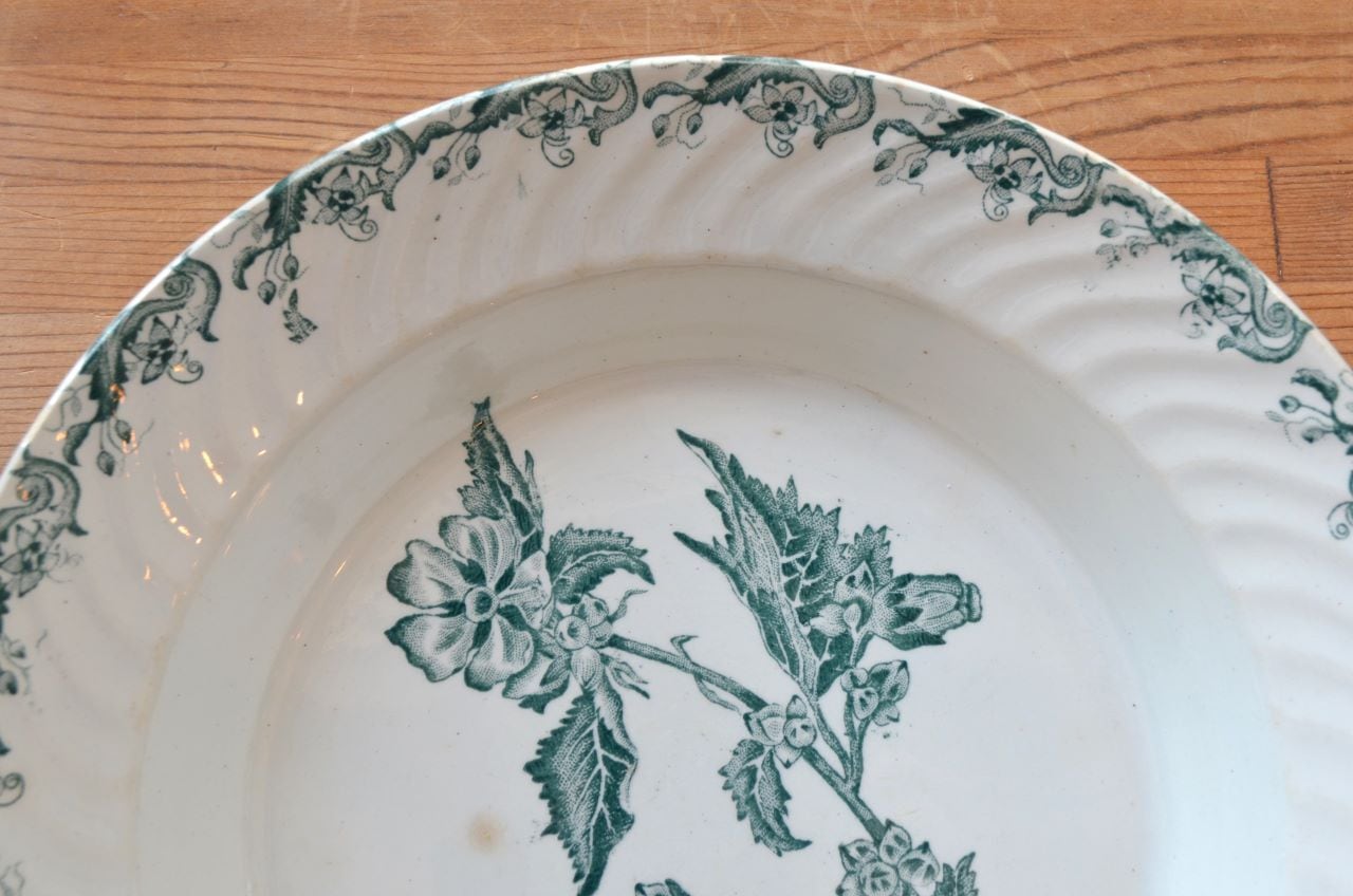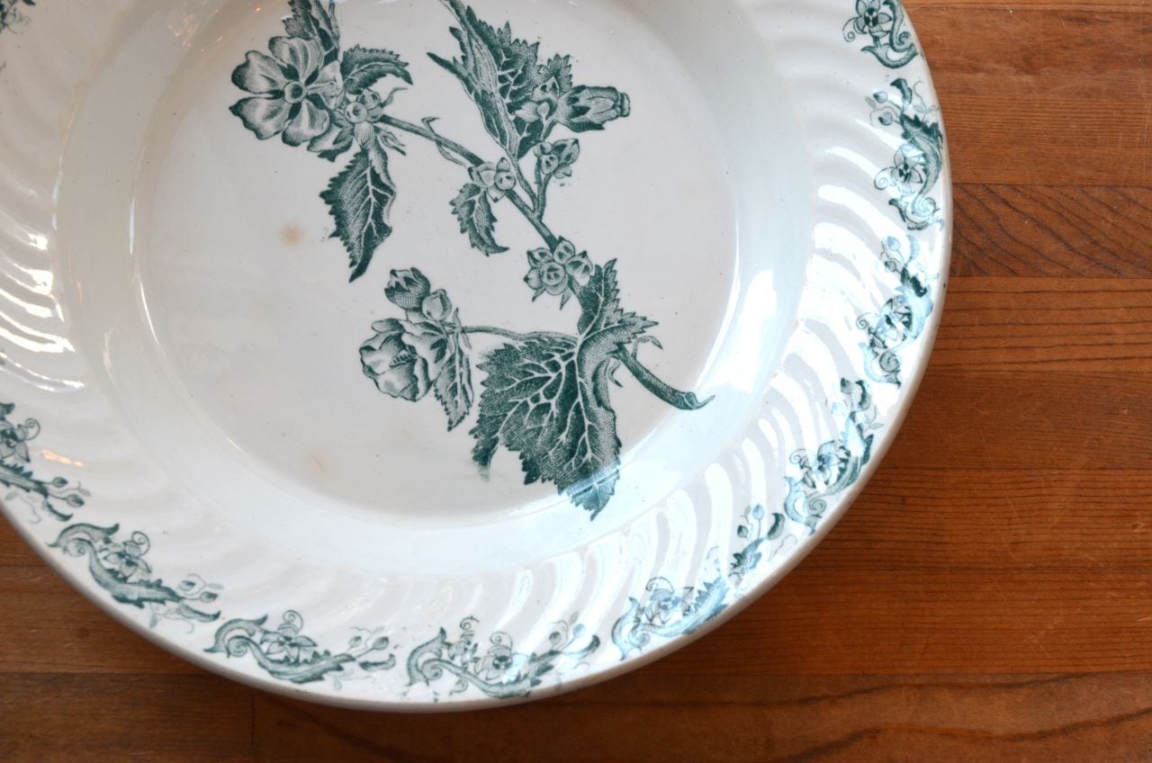 カラー : ホワイト地にグリーンのフラワー、リムもグリーン