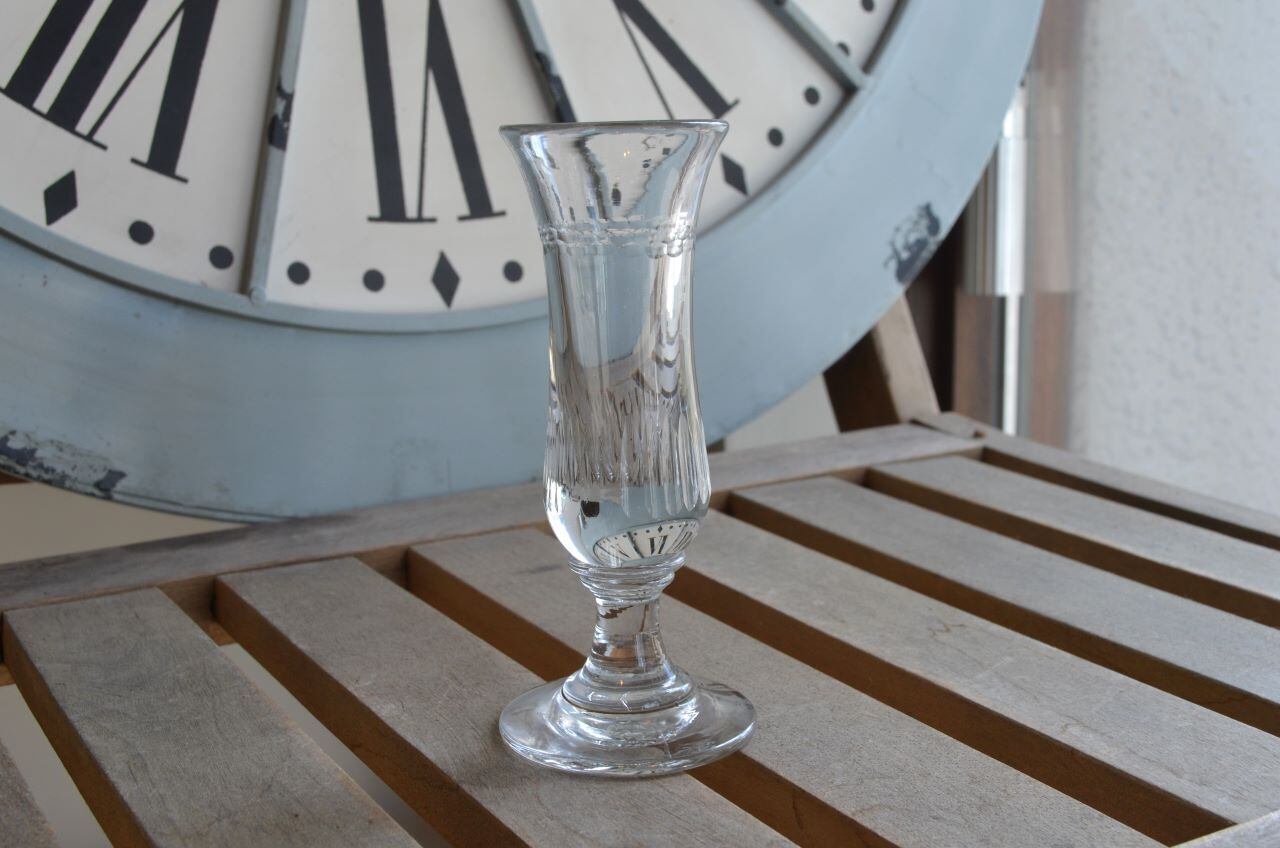 ※こちらは、トロンプイユ(だまし絵)という、内側が上げ底になったグラスです。少量で多く入っている様に見せかける為のもので、当時のカフェなどで使用されていました。