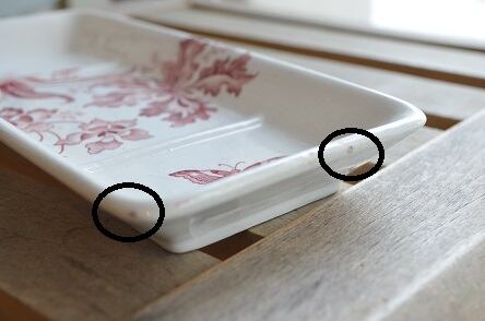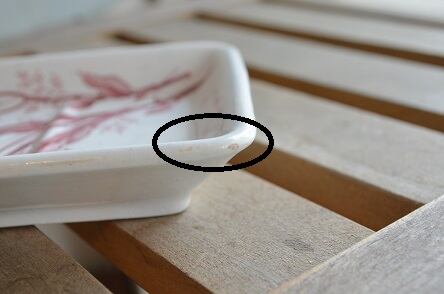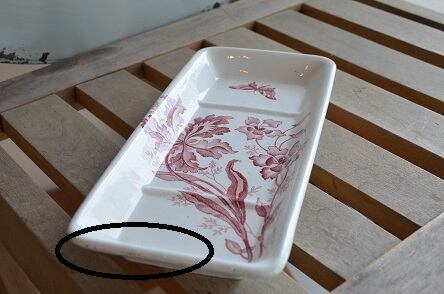 コンディション : 経年による、シミ、キズ、汚れ、貫入などあり、リムに小さなカケが数か所(写真3,4)あります。又、リムに製造時にレッドやブルーの色が付いた部分(写真2)がありますが、あまり目立たず、気にならないと思います。全体的には大変綺麗で良好と思います。