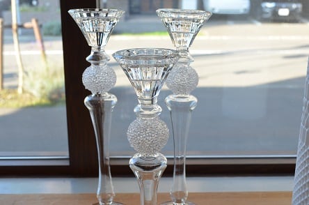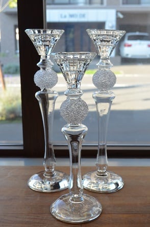 但し、リムがありますので、ピラータイプ(円柱形)のキャンドルなら、最大φ4.5cm迄対応、又、内側に更に溝(写真4枚中右上)がありますので、テーパータイプならφ2cm位のキャンドルをご使用になれます