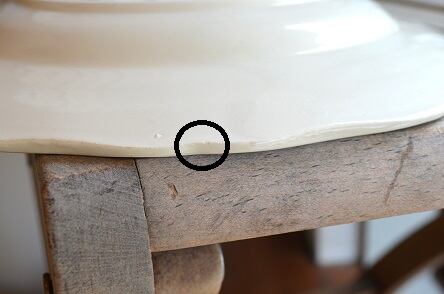 コンディション : 経年による、シミ、キズ、汚れ、貫入などあり、裏側リムに極小さなカケ(写真4)が数か所あります。又、写真5は左側の〇は製造時にできたカケに釉薬を塗った部分と、右側の〇はカケです。全体的には大変綺麗で良好と思います。尚、フラワーの絵柄部分に、製造時に付いた極小さな気泡が見られ、1か所割れています