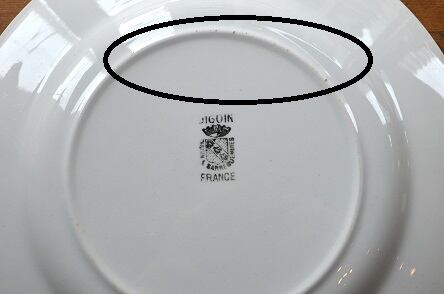 コンディション : 経年による、シミ(写真3)、キズ、汚れ、貫入などあり、又、リムに擦れた感じの極小さなカケ(写真4)(写真以外にもあり)が無数にあり、裏側にも極小さなカケ(写真5)が数か所あります。全体的には悪くはなく良好と思います