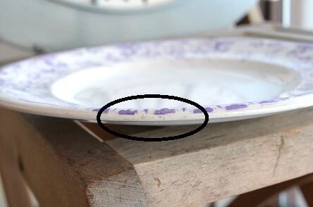 コンディション : 経年による、シミ、キズ、汚れ、貫入などあり、リムに窯キズが少し大ききなった部分とその周辺に極小さなカケ(写真4)が見られます。又、リムに若干の擦れ感(写真5)があります。全体的には大変綺麗で良好と思います