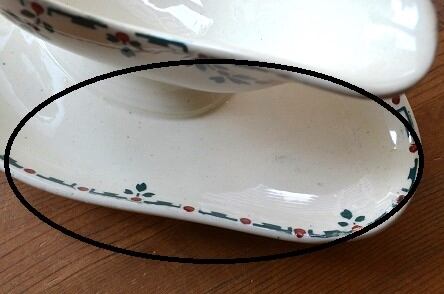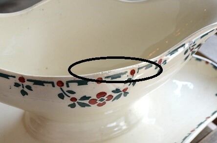 コンディション : 経年による、シミ、キズ、汚れ、貫入などあり、本体リムに極小さなカケ(写真2)があり、リムに若干の擦れ感がございます。又、ソーサー部分のリムにも写真はございませんが、極小さなカケがありますが、何れもそれ程気にならないと思います。全体的には大変綺麗で良好と思います。尚、製造時にお色が飛んでる部分(写真3)がございます