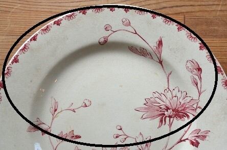 コンディション : 経年による、シミ、キズ、汚れ、貫入などあり、特にシミ(写真2,3)は表面に広がっています。又、リムに極小さなカケ(写真4)があり、リムに擦れ感(写真5)が若干あり、その部分が変色しています。全体的にはとても素敵で良好と思います