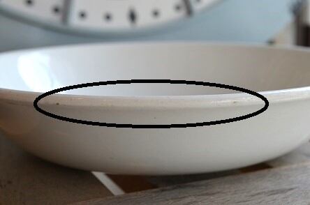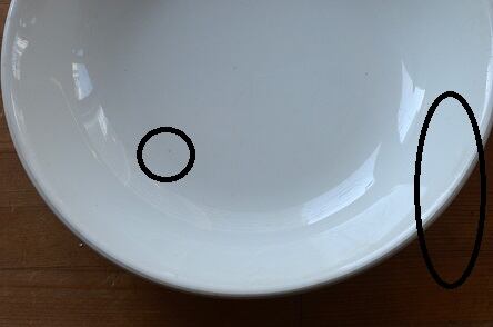 コンディション : 経年による、シミ、キズ、汚れ、貫入などあり、リムに数か所極小さなカケ(写真4,5)があります。又、表面に色が飛んだ部分など(写真3)や、製造時に付いた小さな凸(写真2)などありますが、全体的には大変綺麗で良好と思います