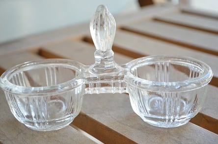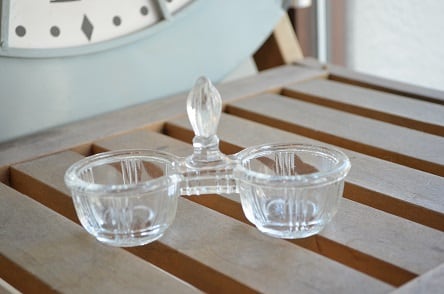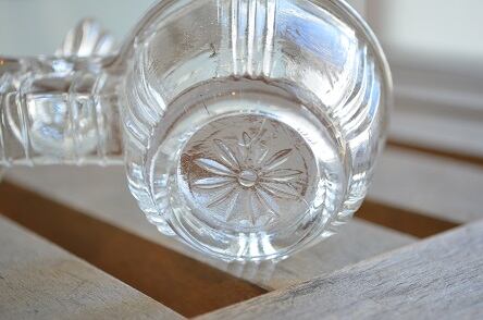 コンディション : 経年による、シミ、キズ、汚れなどありますが、目立ったカケなどはありません。片側の底に製造時に付いたと思われるヨリの様なものがあり、又ヒビ(写真5)があります。全体的には大変綺麗で良好です