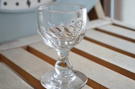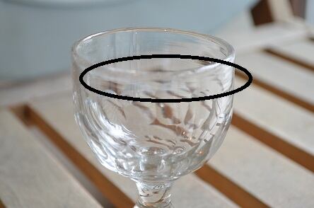 コンディション : 経年による、シミ、キズ、汚れや、側面に1か所小さなカケ(写真3)があり、写真4の気泡の他にも極小さい気泡が数個入っています。又、写真5の上部の半分に線(2〜7mm程)が広がっていて、若干気になるかもしれませんが、カットの綺麗なかわいらしいグラスと思います