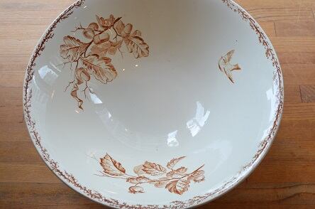 カラー : アイヴォリー地にブラウンの鳥、ローズヒップとどんぐりのモチーフ
