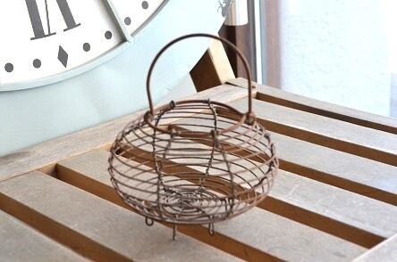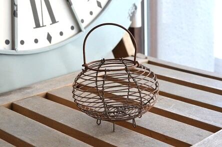 コンディション : 経年による、シミ、キズ、汚れ、サビなどありますが、大変良好でしっかりした作りのかわいらしいおもちゃのエッグパニエです。尚、歪みがあり、底が若干ぐらつきます