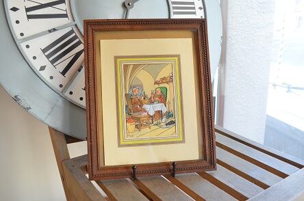 コンディション : 経年による、シミ、キズ、汚れなどありますが、カケなどはありません。尚、裏側はガラスと少し厚い紙のみで、木の枠に小さな釘4か所(写真5)で支えています。全体的には良好と思います