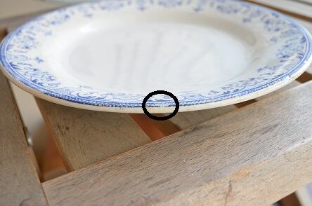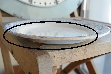 コンディション : 経年による、シミ、キズ、汚れ、貫入などあります。又、リムに若干の擦れ感があり、黒ずんでる部分(写真4)や数か所極小さなカケになってる部分(写真5)があります。尚、色が薄くなっていて欠けて見える部分(写真3)があります。全体的には良好と思います