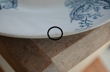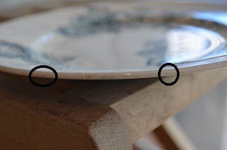 コンディション : 経年による、シミ、キズ、汚れ、貫入などあり、窯キズ以外に極小さなカケ(写真4)が数か所ありますが、ほとんど目立たず、あまり気にならないと思います。又、写真3は窯キズと思われます。尚、写真5は製造時に付いたカケに釉薬をかけています。全体的には大変綺麗で良好と思います