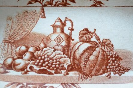 カラー : アイヴォリー地にブラウンのフルーツ、実の付いた木