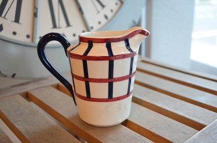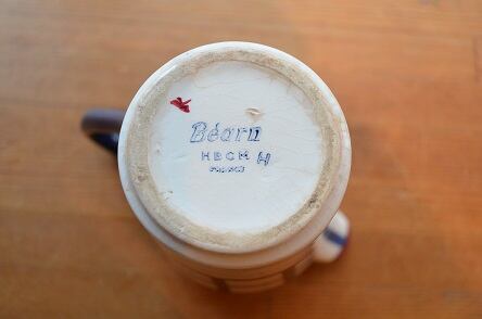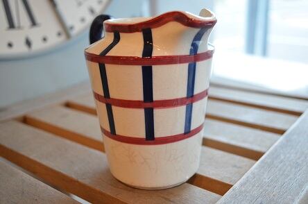コンディション : 経年による、シミ、キズ、汚れ、貫入などあり、特に本体下部の貫入は、内側からのシミが出てブラウンに変色(写真3)しています。尚、目立ったカケはなく、全体的に良好で、かわいらしいミルクピッチャーです