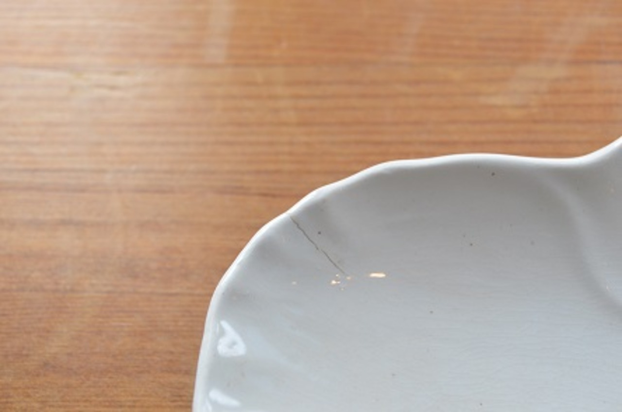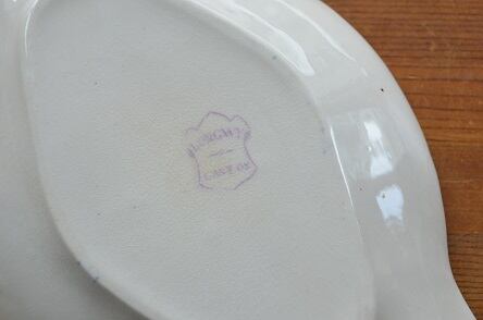 コンディション : 経年による、シミ、キズ、汚れ、貫入などありますが、目立ったカケはありません。左上部にヒビ(写真3)がありますが、製造時に付いたものと思われ、右下部リムに青い色(写真4)も、製造時に付いたものと思われます。全体的にシミが広がっていて、特に右側のシミ(写真4)が気になるかもしれませんが、全体的には、良好と思います。