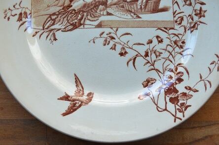 コンディション : 経年による、シミ、キズ、汚れ、貫入などあり、特にシミは全体的にありますが、アイヴォリー地なのであまり目立たないかと思います。リムに若干の擦れ感はありますが、全体的には良好で味わいのあるプレートと思います
