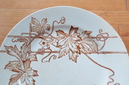 コンディション : 経年による、シミ、キズ、汚れ、貫入などあり、特にシミは全体的にブラウンに変色しています。又、リムに小さなカケ(写真5)があり、リムに若干擦れ感のある部分があります。全体的には大変趣のあるレアなデザートプレートです