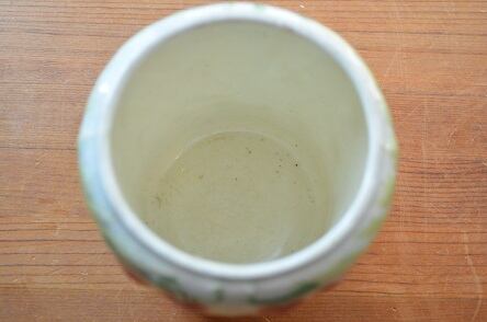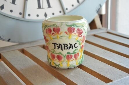 コンディション : 経年による、シミ、キズ、汚れ、貫入などあります。又、底にカケ(写真5)がありますが、目立たず気にならないと思います。残念なことに蓋がありませんので、何か別のことにご使用ください。全体的には大変綺麗で良好で、とてもかわいらしいキャニスターです