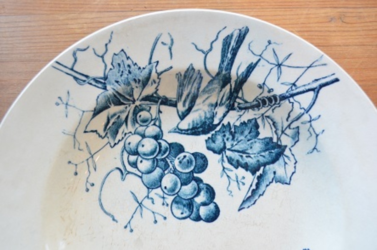 カラー : アイヴォリー地にブルーのバードとブドウやベリー柄