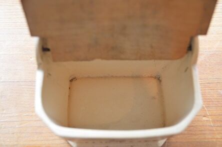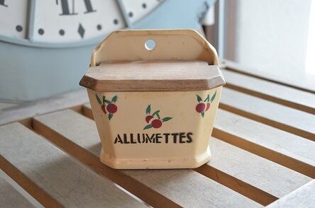 コンディション : 経年による、シミ、キズ、汚れ、貫入などあり、正面左に4cm程のヒビ(写真2)があります。又、正面下部にはカケ(写真3)があり、上部(写真4)にカケや擦れ感、1cm程のヒビもあります。尚、木の蓋に若干ぐらつきがありますが、問題はないと思います。全体的には大変かわいらしいレアなマッチ入れです