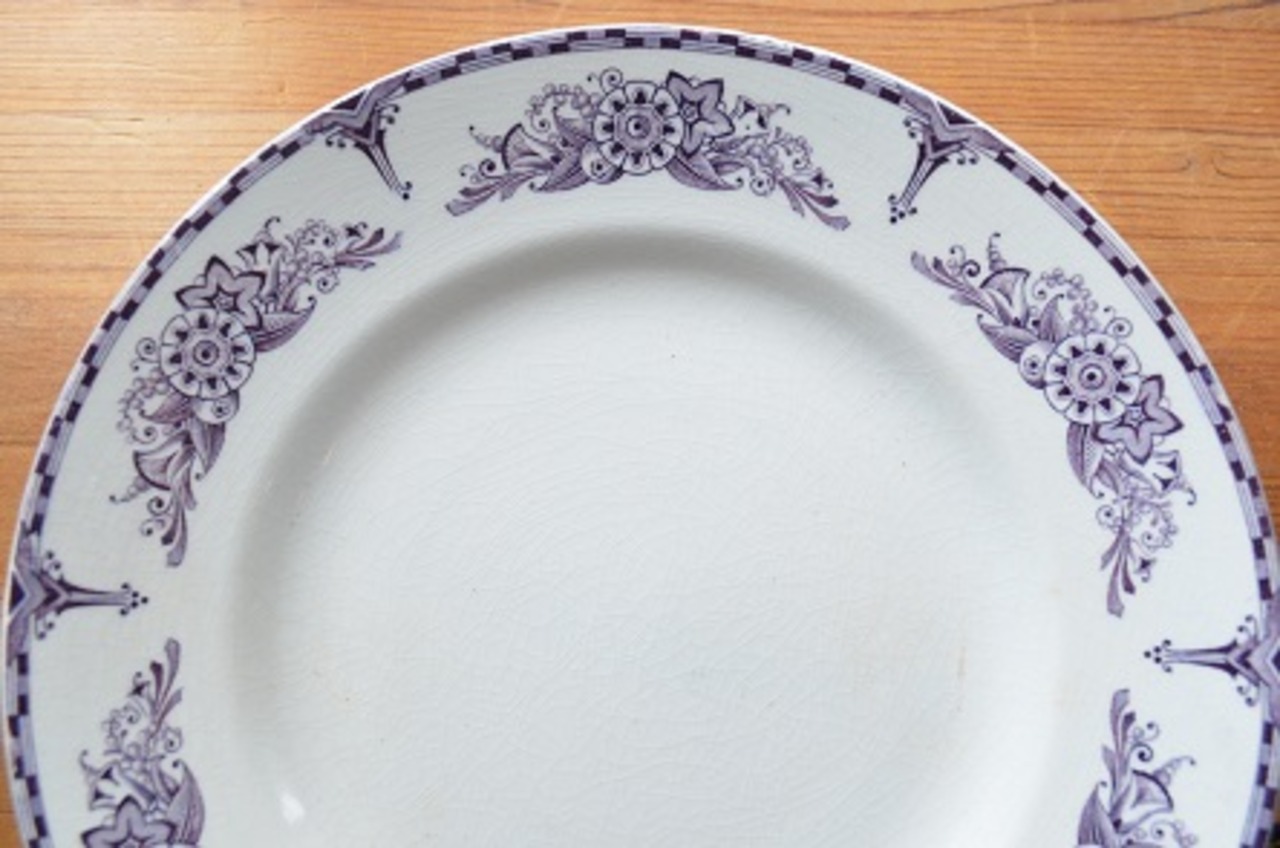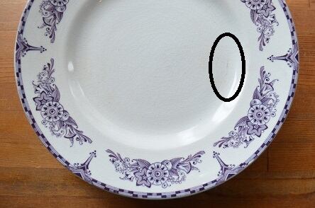 コンディション : 経年による、シミ、キズ、汚れ、貫入などあり、表面のシミが若干茶色(写真4)になっています。ただ目立ったカケなどなく、大変綺麗で良好です