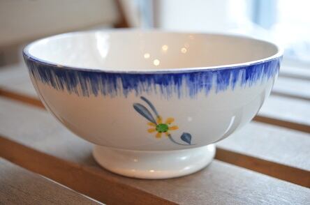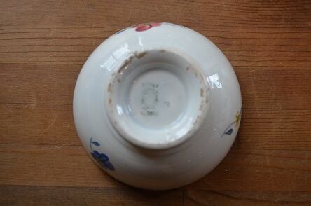コンディション : 経年による、シミ、キズ、汚れ、貫入などあり、又、リムに小さなカケ(写真4)が数ケ所見られますが、あまり目立たず気にならないと思います。高さがあまりないタイプで、とてもかわいらしいボウルです。