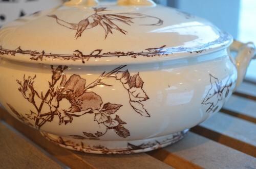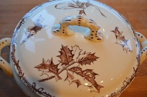カラー : アイヴォリー地にブラウンの花やヒイラギ柄、縁周りはバード