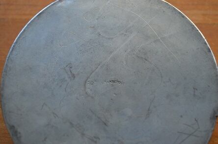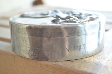 コンディション : 経年による、シミ、キズ、汚れなどありますが、比較的綺麗で、とてもかわいらしいと思います。尚、サイドにいたずらに文字(写真3)が書かれています。又、蓋の花の横にアルファベットで製作者の名前(写真2)と思われるものが書かれていますが、よく読めません。裏にはARTISTIQUE(芸術的な)(写真5)と彫られています
