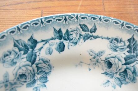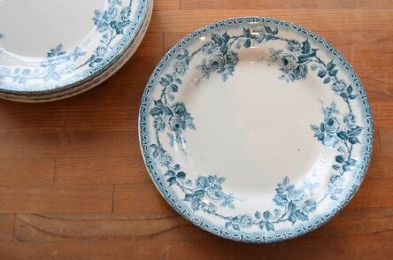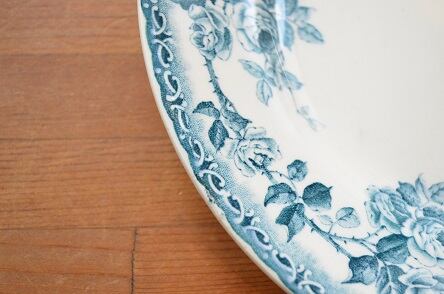 コンディション : 経年による、シミ、キズ、汚れ、貫入などありますが、目立ったカケはありません。写真4のグリーンの点は製造時に色が飛んだものです。又、転写シートのつなぎ目(写真2)が全部で3か所ありますが、それほど気にならないと思います。尚、転写が若干ずれて、リムが白くなってる部分(写真3)がありますが、全体的には大変良好と思います。