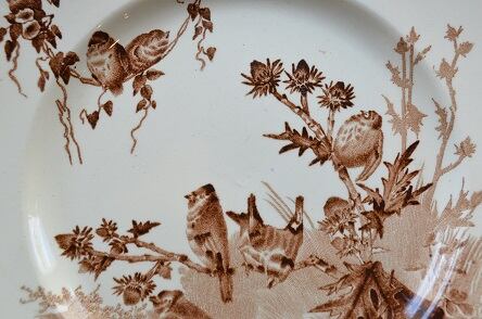 カラー : アイヴォリー地にブラウンのバードと木の葉