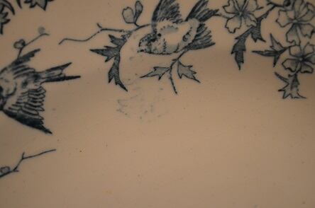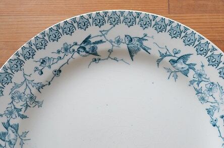 コンディション : 経年による、シミ、キズ、汚れ、貫入などありますが、縁の窯キズ以外に目立ったカケなどはありません。尚、一ヶ所、転写のブレ(写真4)がありますが、それほど気にならないのではないかと思います。全体的には大変良好と思います。