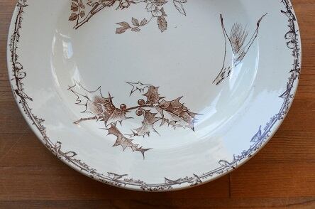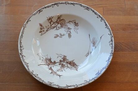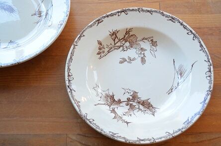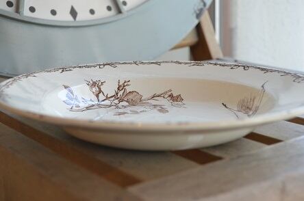カラー : アイヴォリー地に、ダークブラウンの花、リムはダークブラウンの小鳥