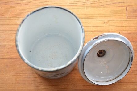 コンディション : 経年による、シミ、キズ、汚れ、サビなどあります。蓋やつまみ(写真2,3)、上部縁(写真3)、下部(写真4)にカケやサビがあります。全体的には良好とは言えませんが、珍しくてかわいらしいチェリーのキャニスターです。