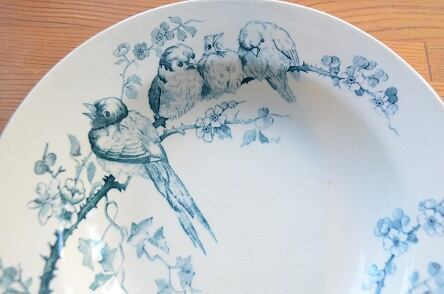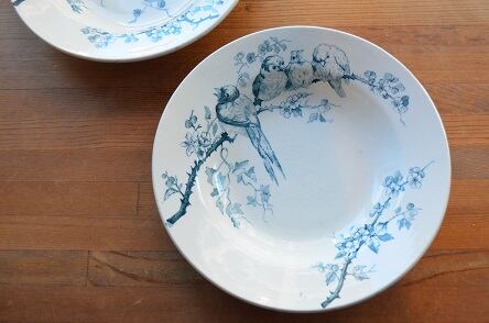 コンディション : 経年による、シミ、キズ、汚れ、貫入などあります。窯キズ以外に目立ったカケなどはありませんが、表面下部に製造時に付いたキズに釉薬を塗った部分(写真3)があります。若干目立ちますが、全体的には大変良好で、珍しいスーププレートと思います。