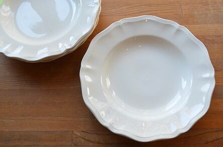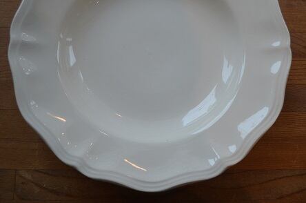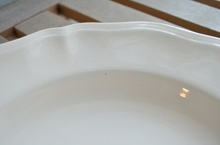 コンディション : 経年による、シミ、キズ、汚れ、貫入などあまり見られませんが、リムに極小さなカケがあります。こちらはほとんど目立たず、気にならないと思います。尚、表面に製造時に付いた小さな突起(写真3)があります。又、窯キズの横に擦れ感のある部分(写真4)がありますが、全体的には大変綺麗で良好です。